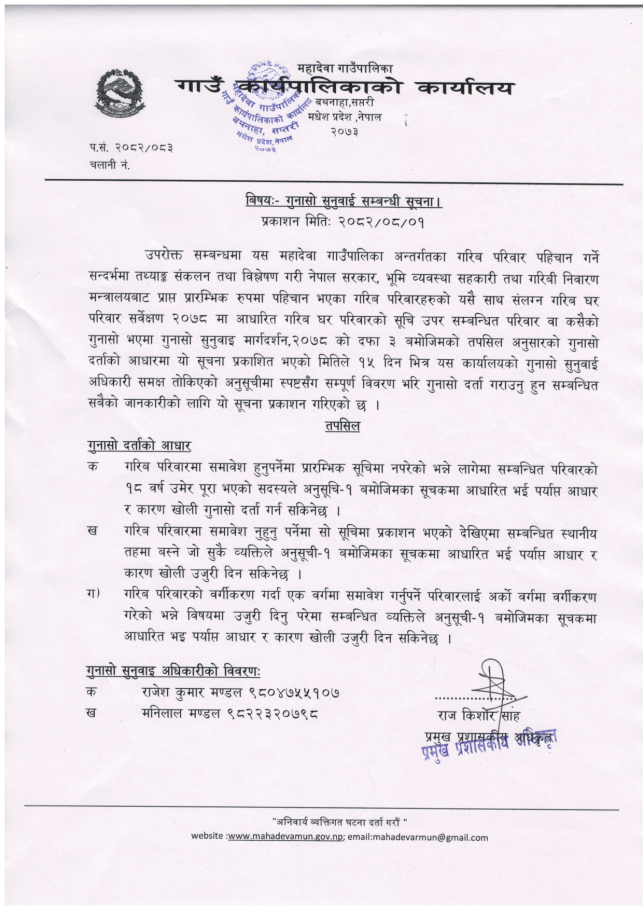 गुनासो सुनुवाई सम्बन्धी सूचना