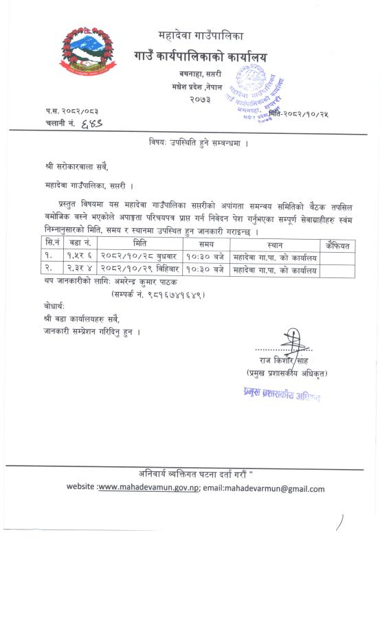 जानकारी सम्बन्धमा।