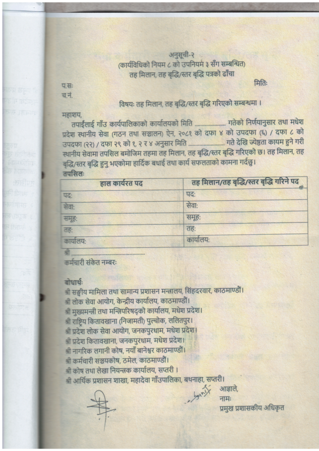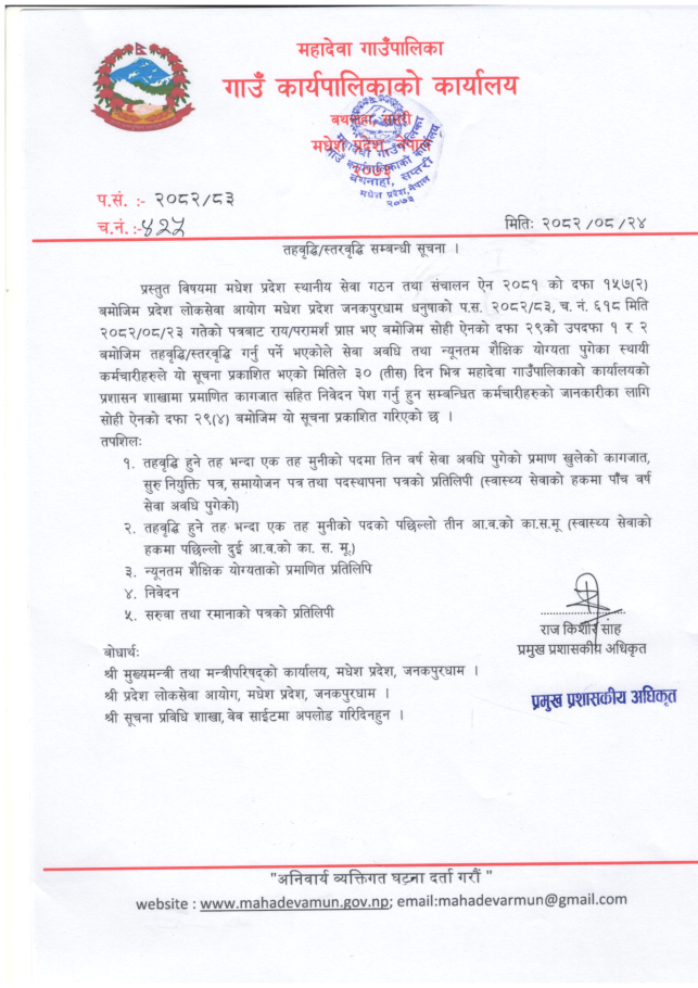 तहवृद्धि/स्तरवृद्धि सम्बन्धी सूचना ।