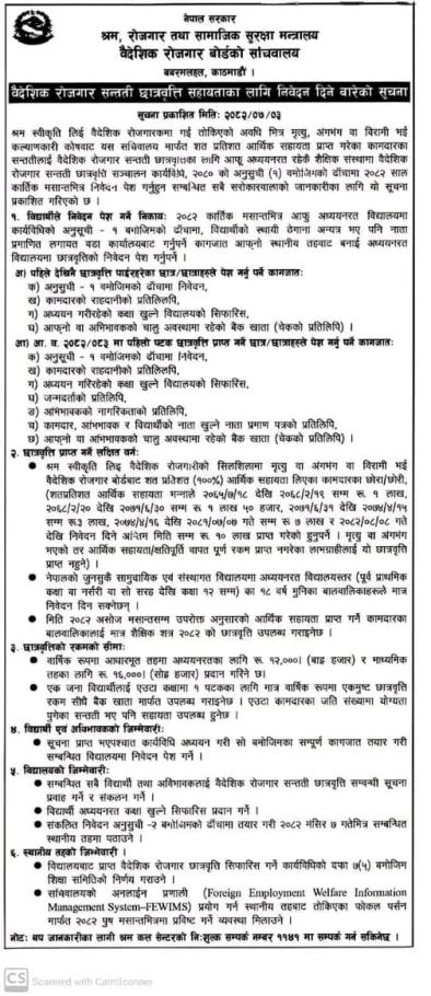 बैदेशिक रोजगार सन्तति छात्रबृति सम्बन्धि सूचना