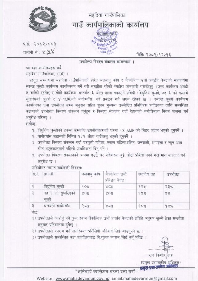 उपभोक्ता विवरण संकलन सम्बन्धमा।