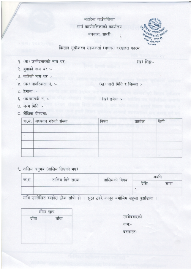 किसान सूचीकरण सहजकर्ता(गणक) दरखास्त फारम