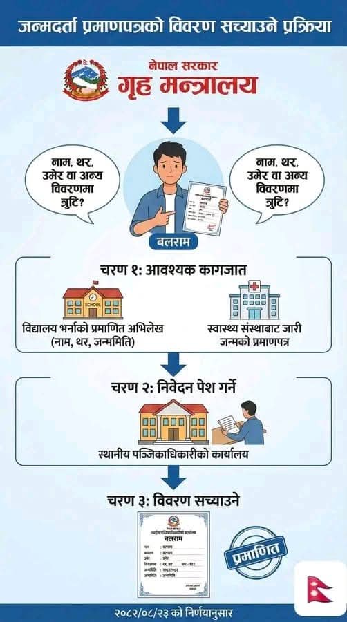 जन्मदर्ता प्रमाणपत्रको विवरण सच्याउने प्रक्रिया