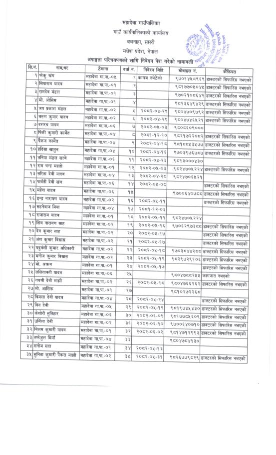 जानकारी सम्बन्धमा।