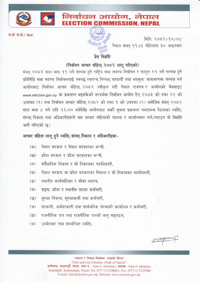 निर्वाचन आचार संहिता २०८२