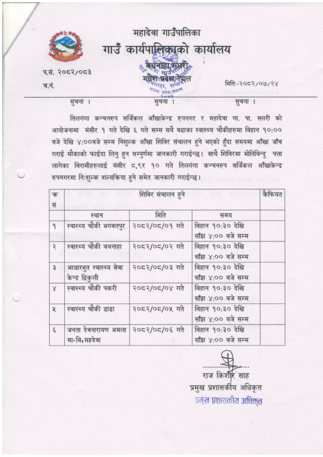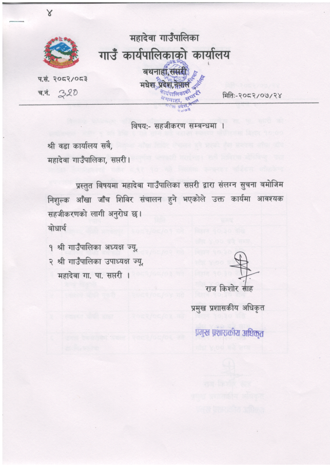 निशुल्क आँखा शिविर संचालन सम्बन्धि सूचना