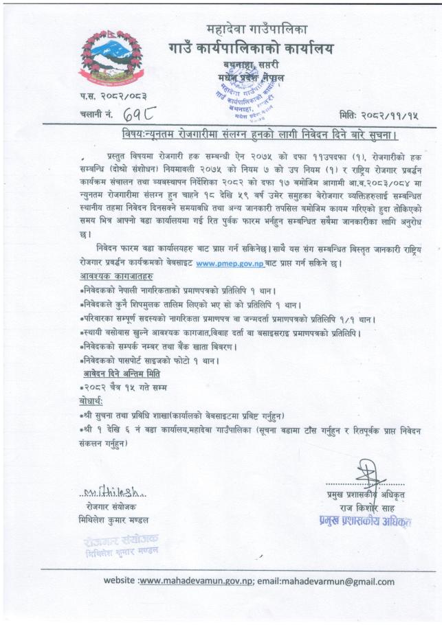 Invitation for Online Bids: Construction of ward office building Mahadeva-2