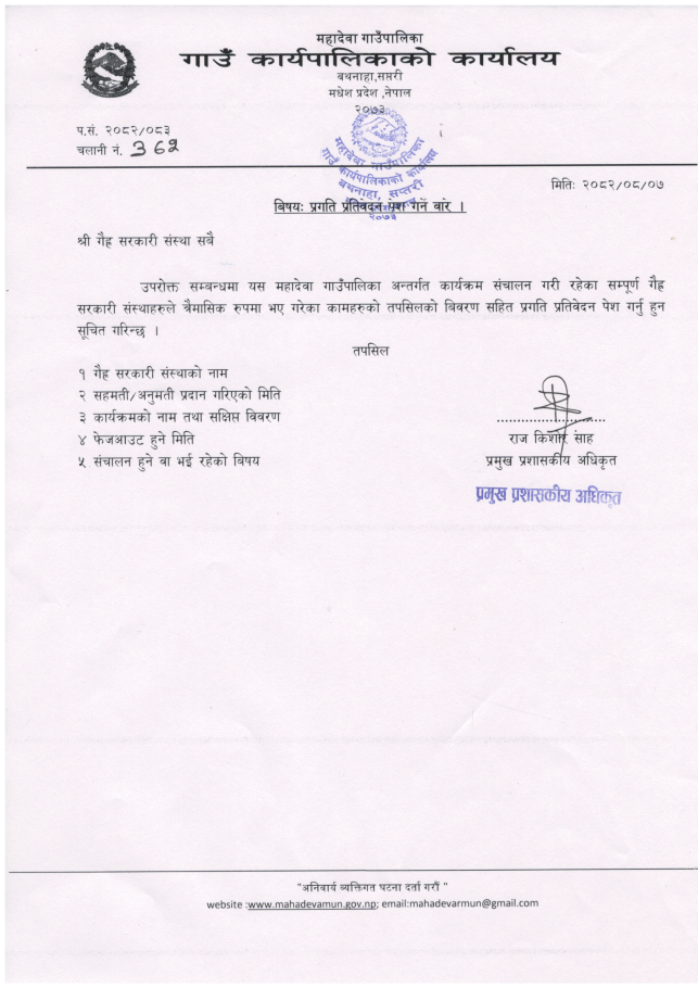 प्रगति प्रतिवेदन पेश गर्ने वारे ।