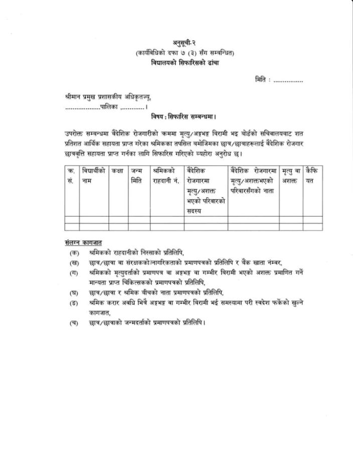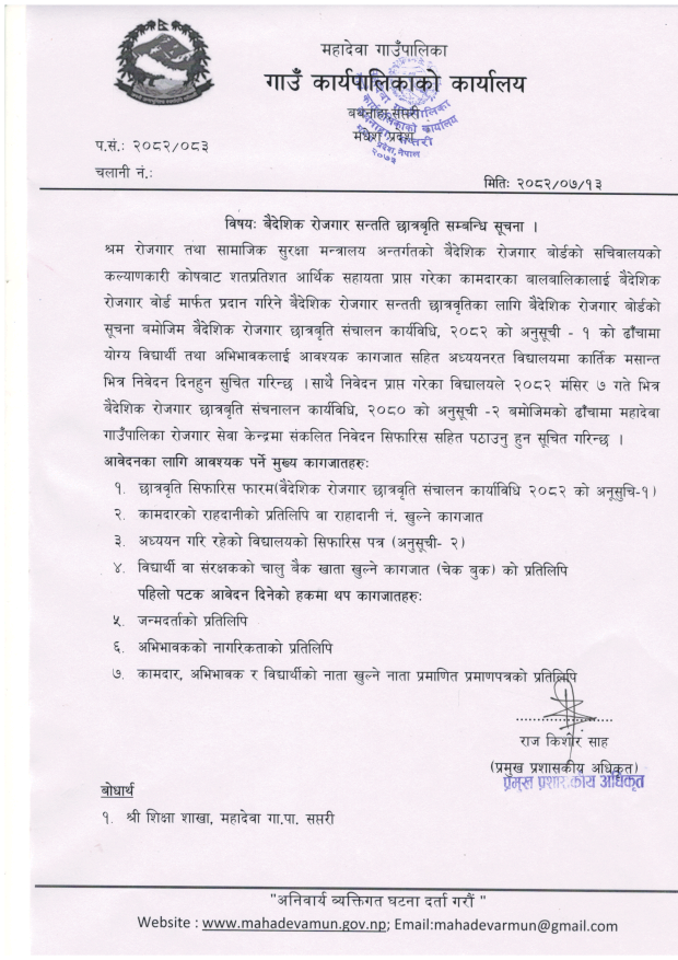बैदेशिक रोजगार सन्तति छात्रबृति सम्बन्धि सूचना