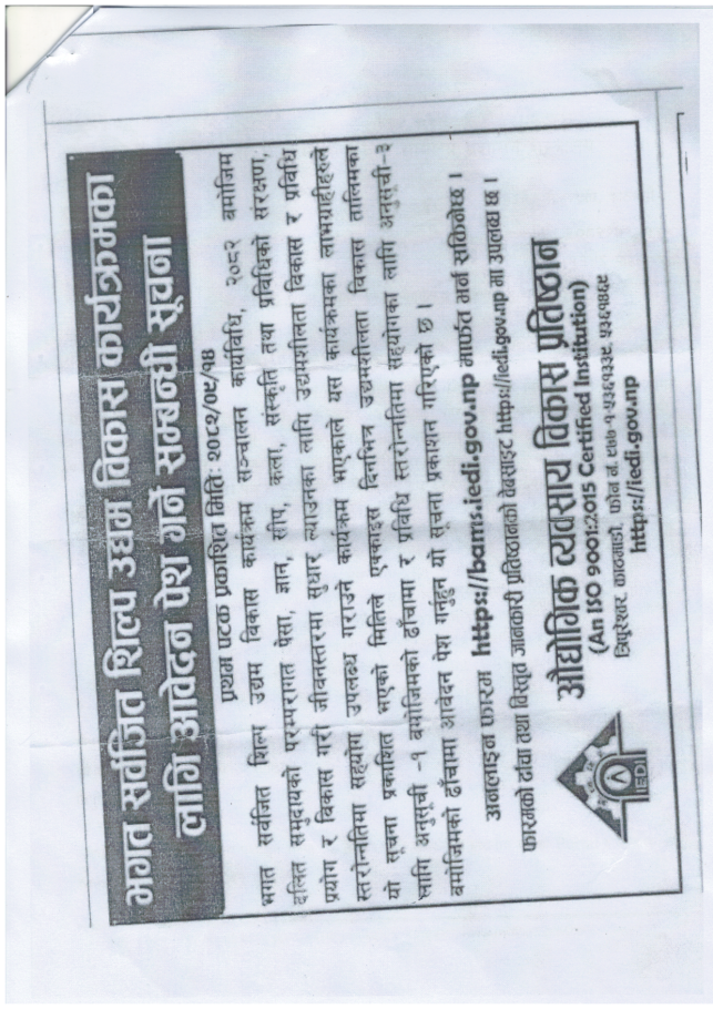 भगत सर्वजित शिल्प उद्यम विकास कार्यक्रमका लागि आवेदन पेश गर्ने सम्बन्धी सूचना