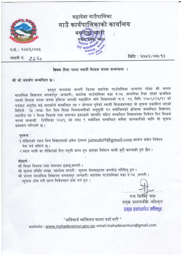 Invitation for Online Bids: Construction of ward office building Mahadeva-2
