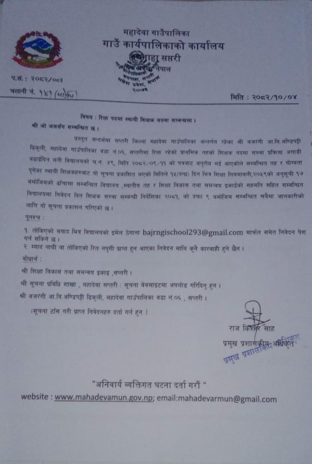 रिक्त पदमा स्थायी शिक्षक सरुवा सम्बन्धमा ।