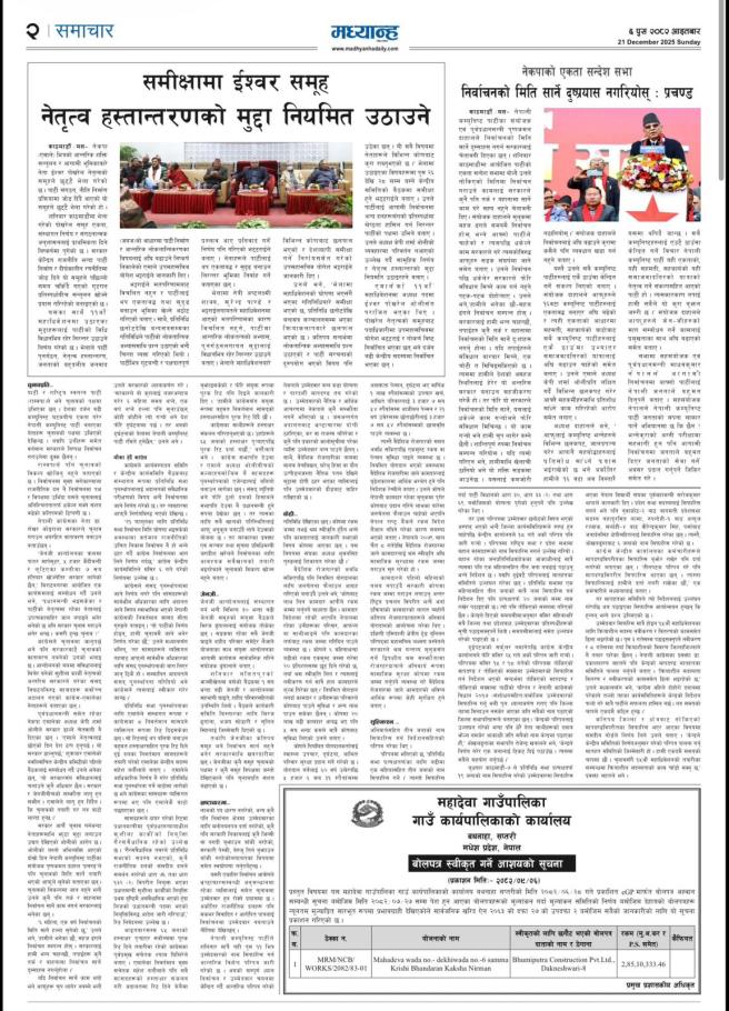 वोलपत्र स्वीकृत गर्ने आशयको सूचना