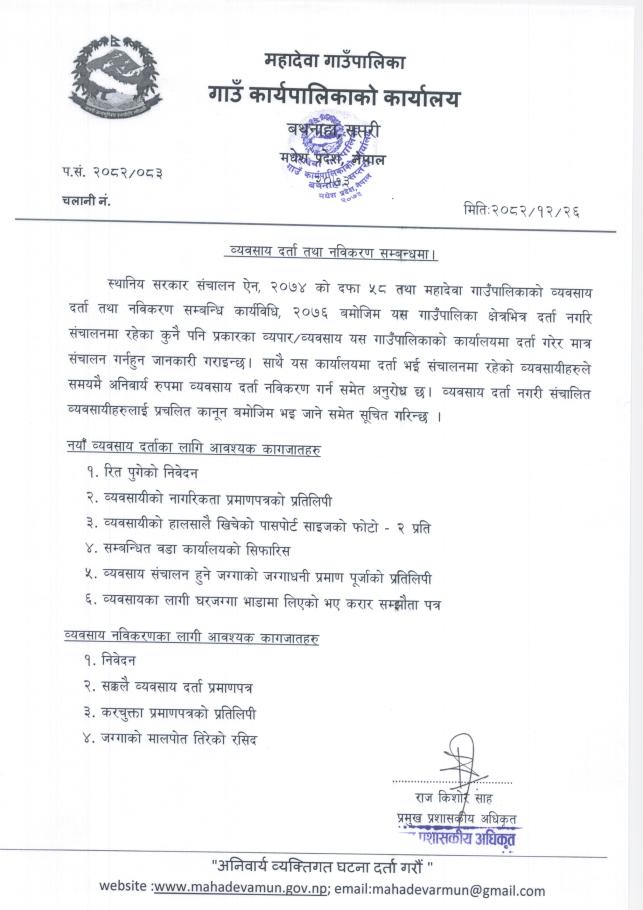 Invitation for Online Bids: Construction of ward office building Mahadeva-2