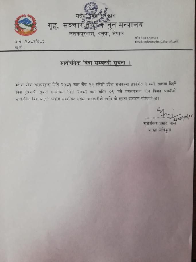 सार्वजनिक विदा सम्बन्धी सूचना ।
